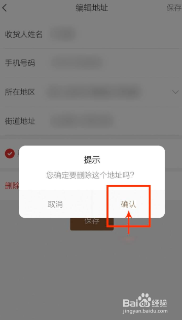 最后点击【确认】。这样我们就完当作了删除收货地址。