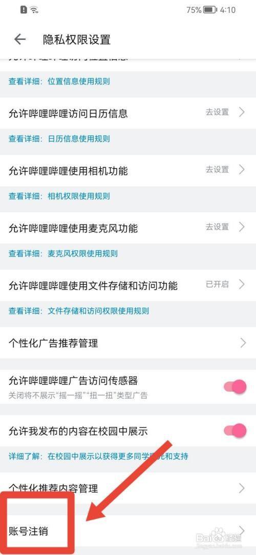进入设置窗口,点击【隐私权限设置】,接着点击【账号刊出】。