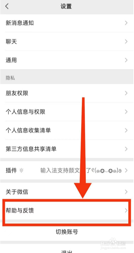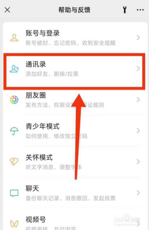5.进入到帮忙与反馈页面后,点击:通信录。