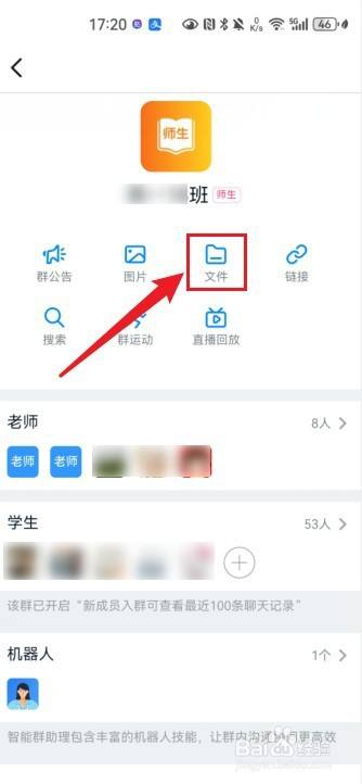 点击选择群聊内里的【文件】,选择需要提交图片的文件。