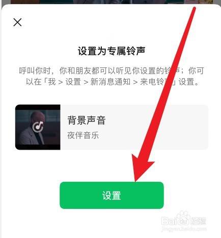 最后,如下,点击【设置】即可为女伴侣设置专属微信铃声了