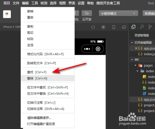 点击下拉菜单中的查找。