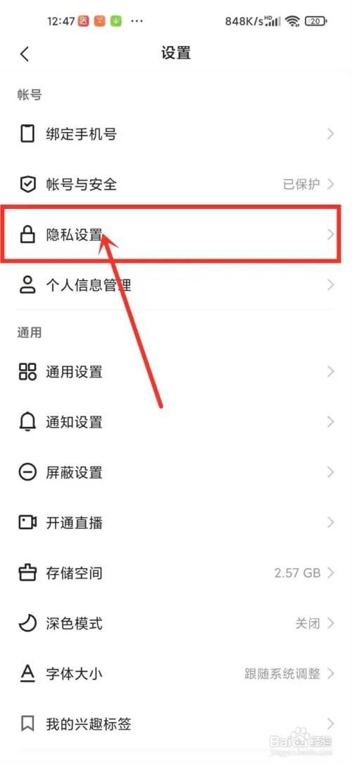 进入到设置界面,点击“隐私设置”。