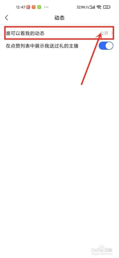 进入到动态设置界面,点击“谁可以看我的动态”选项。