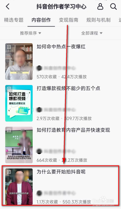 5.进入到抖音创作者中间页面后,点击: 进修中间。