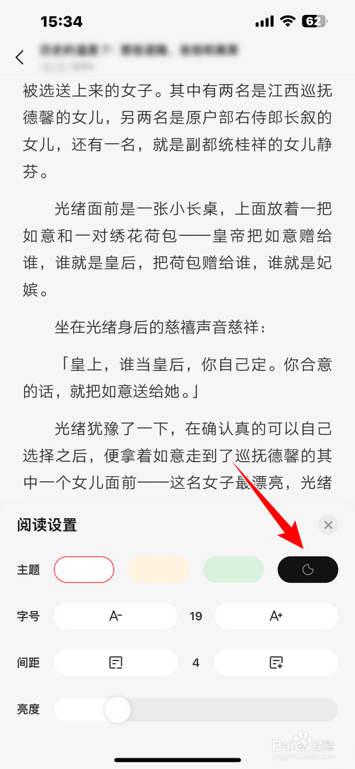 在弹出的阅读设置窗口中,点选新的本家儿题。