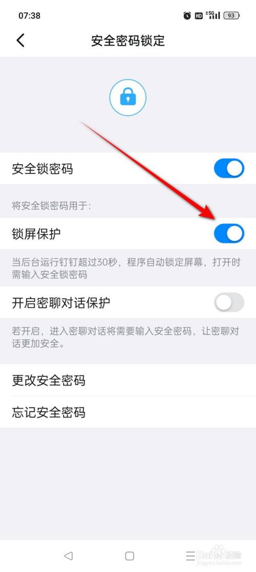 点击“安全密码锁定”。