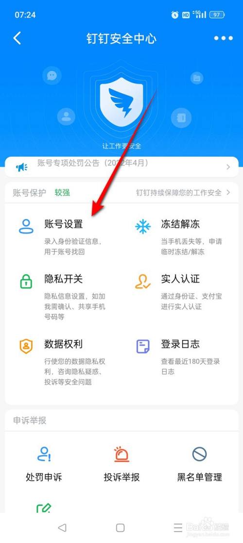 点击“账号设置”。