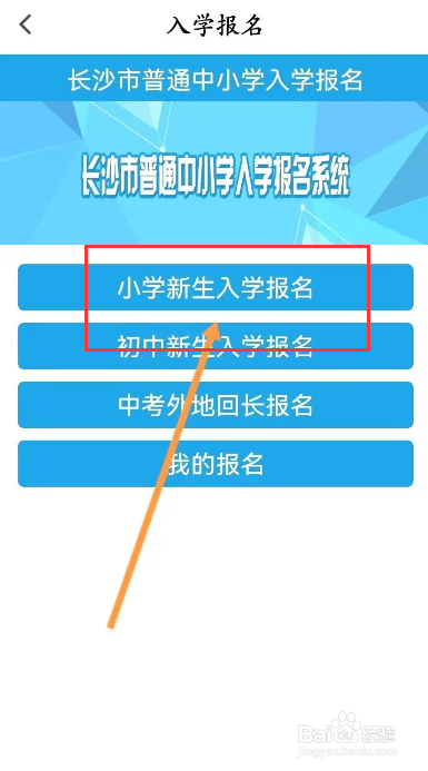 接着点击【小学新生入学报名】选项。