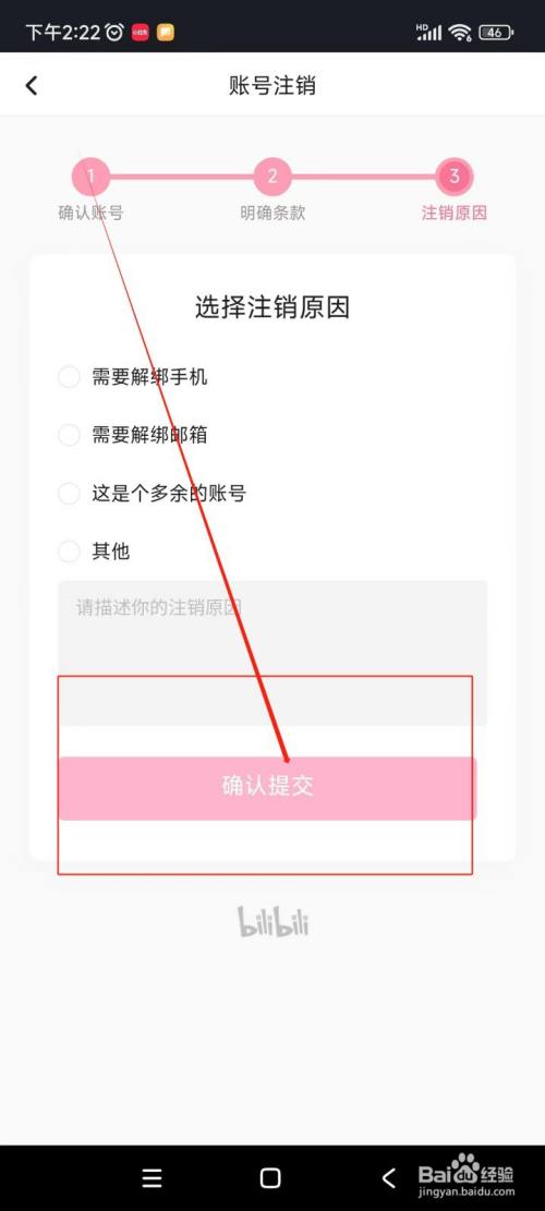 在弹出的新界面中选择刊出缘故原由后,点击底部的“确认提交”即可完当作刊出账号的操作