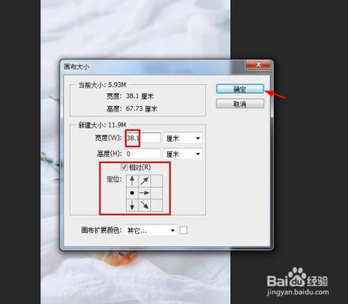 第三步:在“画布巨细”对话框中,根据下图所示举行设置。