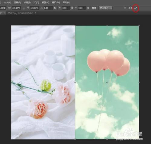 第六步:利用快捷键Ctrl+T键,将第二张图片调解当作合适的巨细,单击“√”按钮。