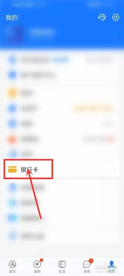 进入到我的界面,点击页面“银行卡”选项。
