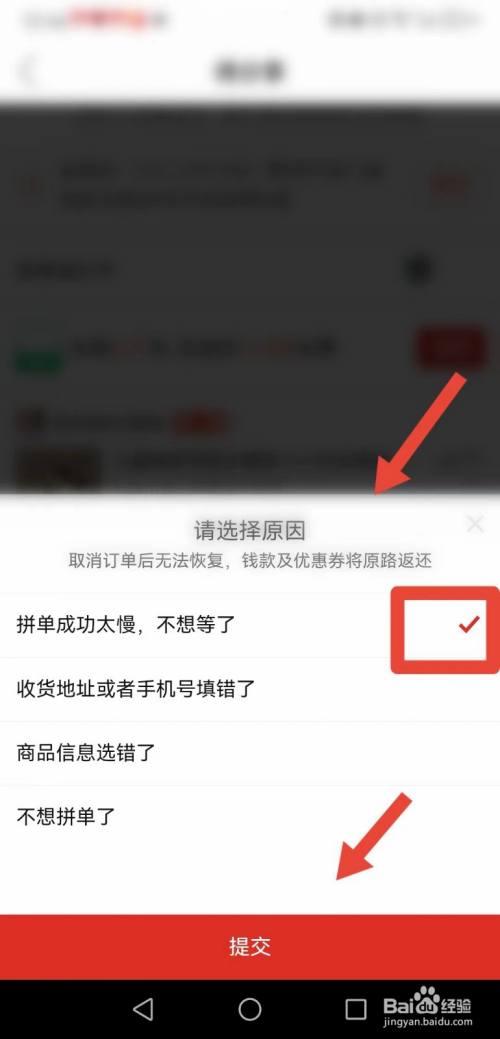 选择取消订单缘故原由,点击【提交】