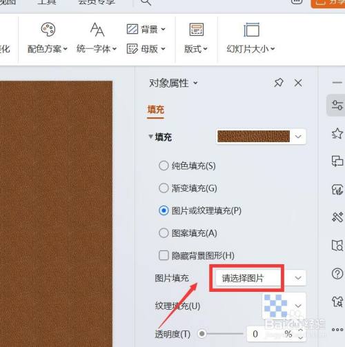 进入对象属性,勾选“图片或纹理填充”。