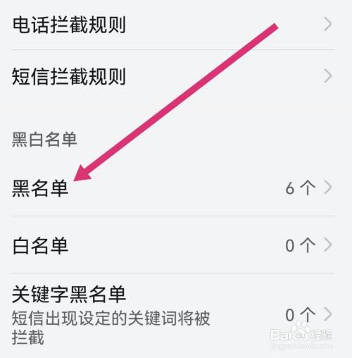 第四步:选择页面【黑名单】选项,点击进入;