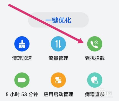 第二步:选择页面【骚扰拦截】图标,点击进入;