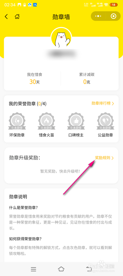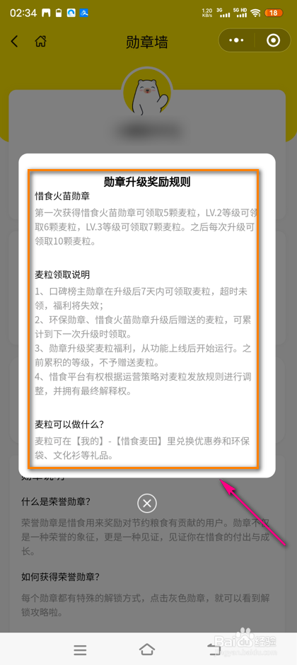 软件跳出弹框,即可查看勋章进级奖励法则详情。