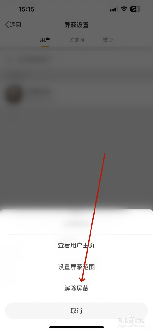 打开屏蔽设置的界面在用户栏点击”用户“选项,
