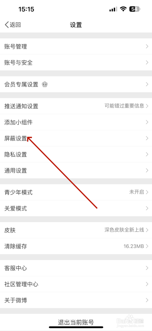 打开设置的界面点击“屏蔽设置”选项,