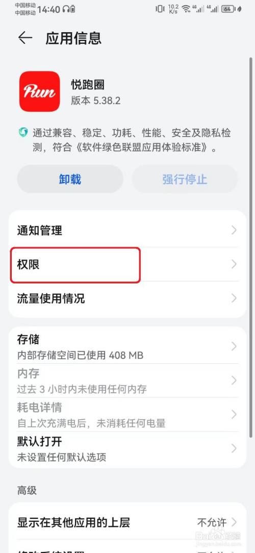在位置信息权限页面,选择【克制】悦跑圈位置信息点击权限。