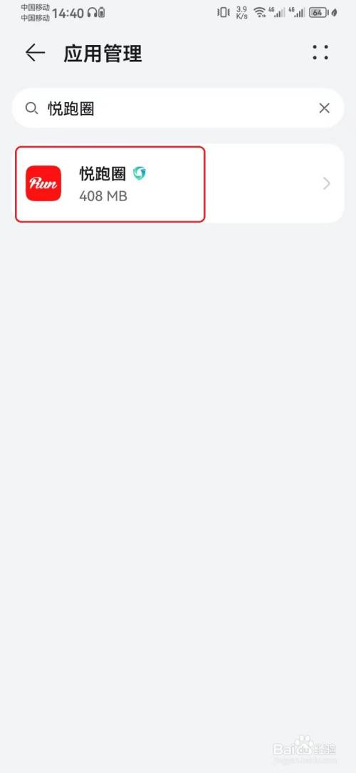 在应用办理页面,搜刮选择【悦跑圈】选项。