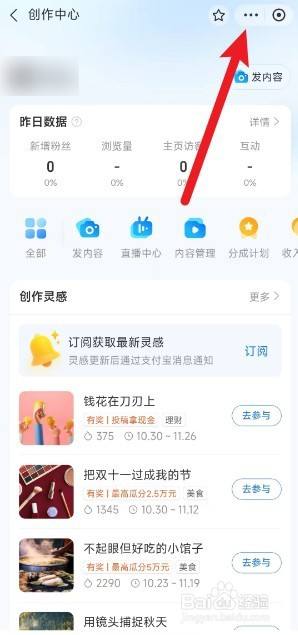 在创作中间页面右上角点击三个点进入