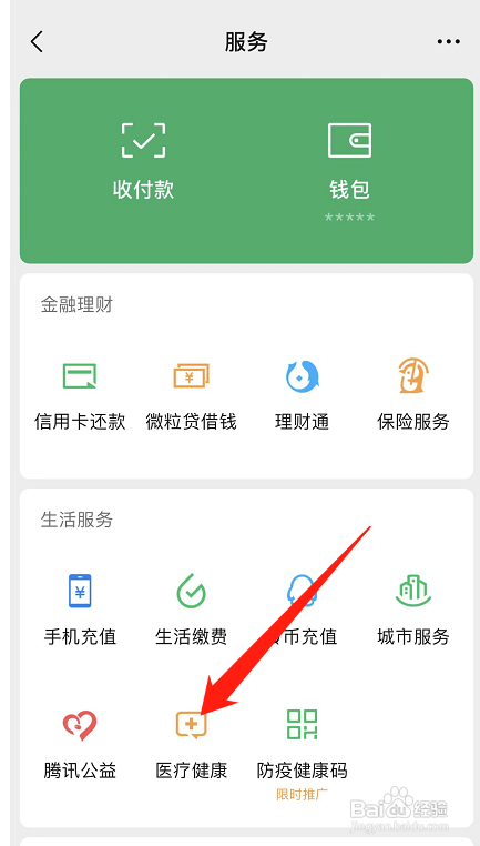 在办事页面,点击医疗康健。