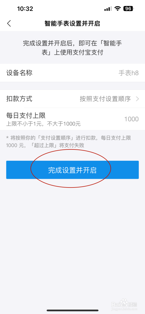 进入智能腕表设置并开启的页面点击【完当作后设置并开启】按钮;