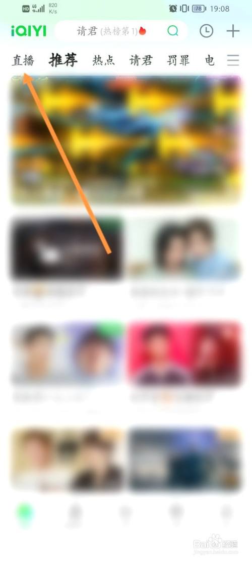 找得手机上爱奇艺应用,找到直播。