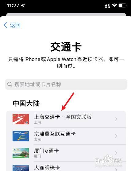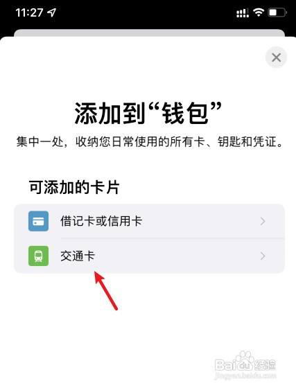 选择交通卡的选项。