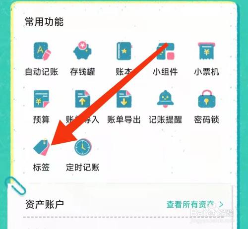 在我的页面,常用功效栏中点击【标签】图标,如图所示