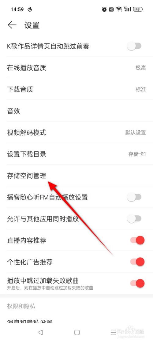 点击“存储空间设置”。