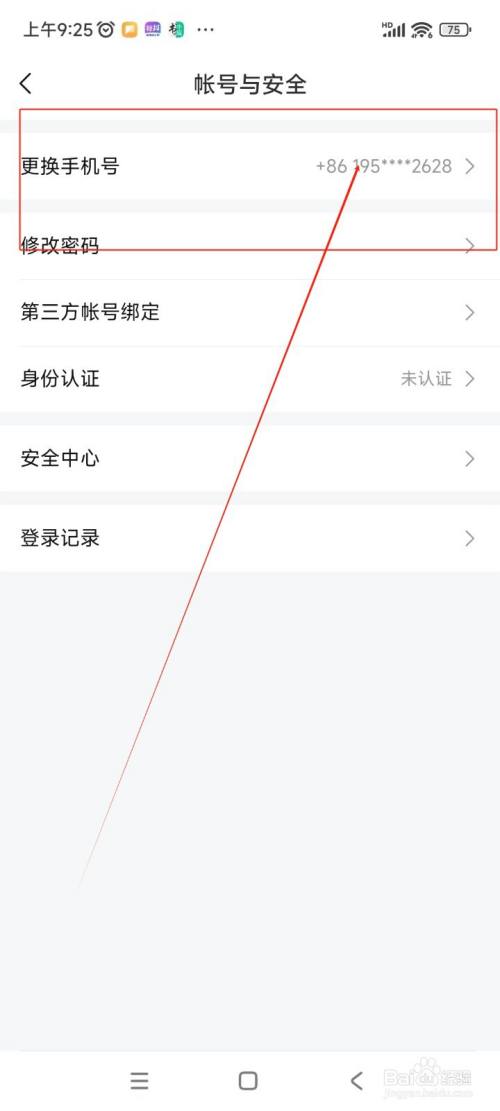在跳转的帐号与安全界面中,点击“改换手机号”