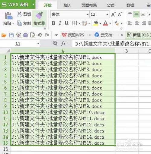 在B1、C1、D1、E1单位格中别离输入新文件名称、文件扩展名、英文双引号、英文双引号。在F1单位格中输入=B1&C1 。