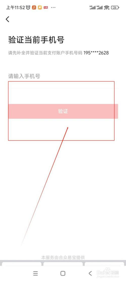 在验证手机号的界面中,输入手机号码后,点击底部的“验证”
