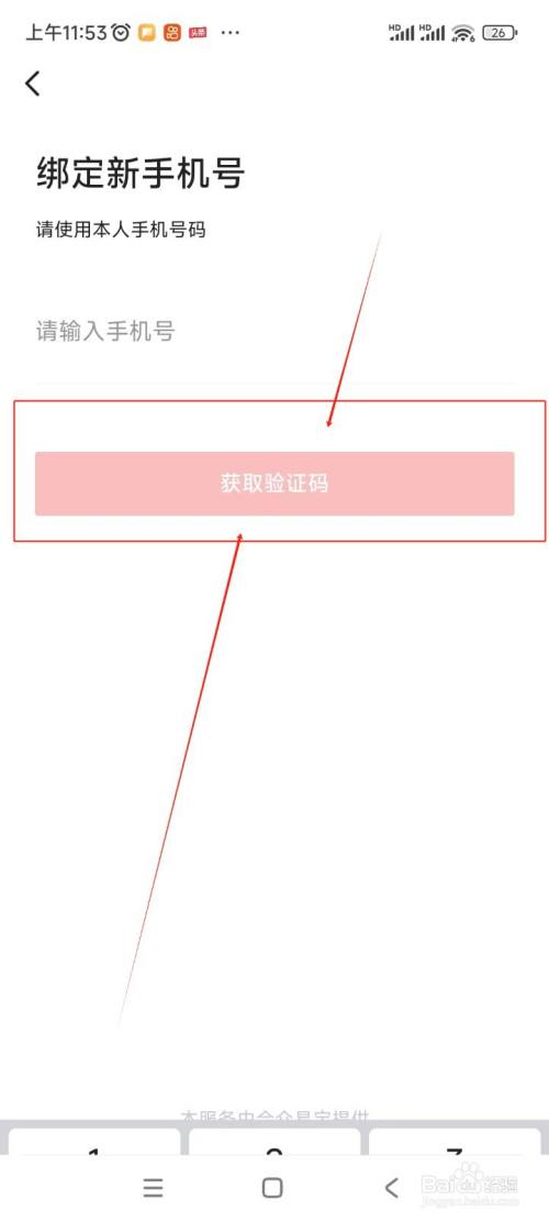 在底部输入验证码后,在新界面中绑定新手机号,再点击“获取验证码”