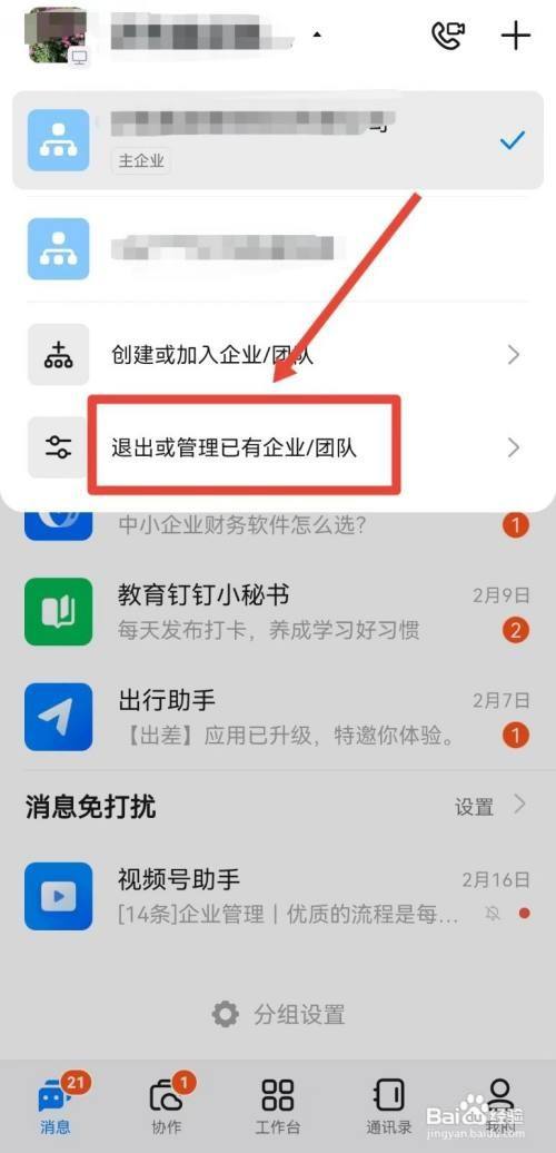 在钉钉的动静页面点击公司名称下的睁开选项。