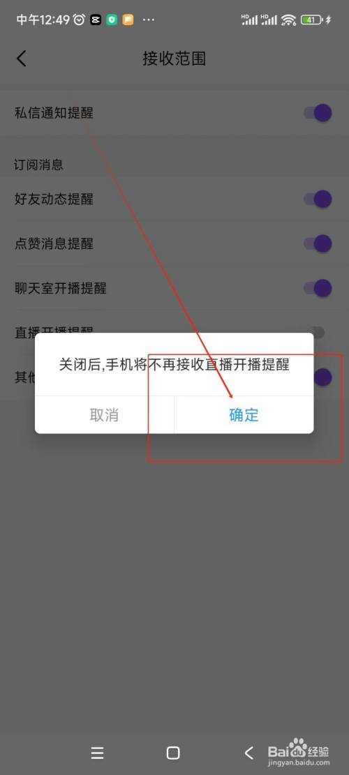 在弹出的小窗口中再次点击“确定”,即可完当作封闭直播开播提示功效乐成