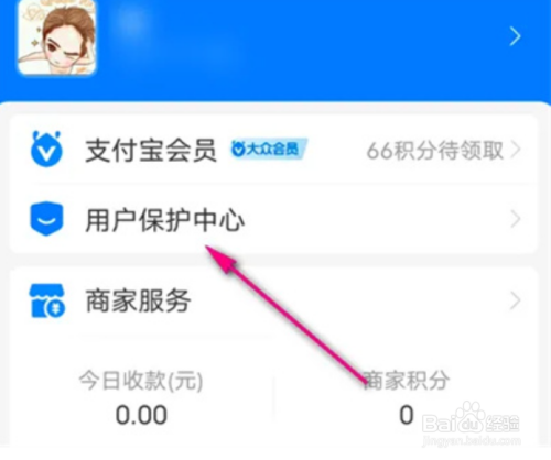在我的页面里找到“用户掩护中间”,并在上面点击打开。