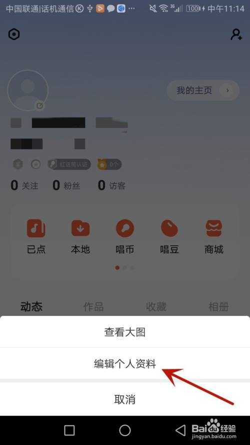 点击箭头指标的目的的“编纂个人资料”选项