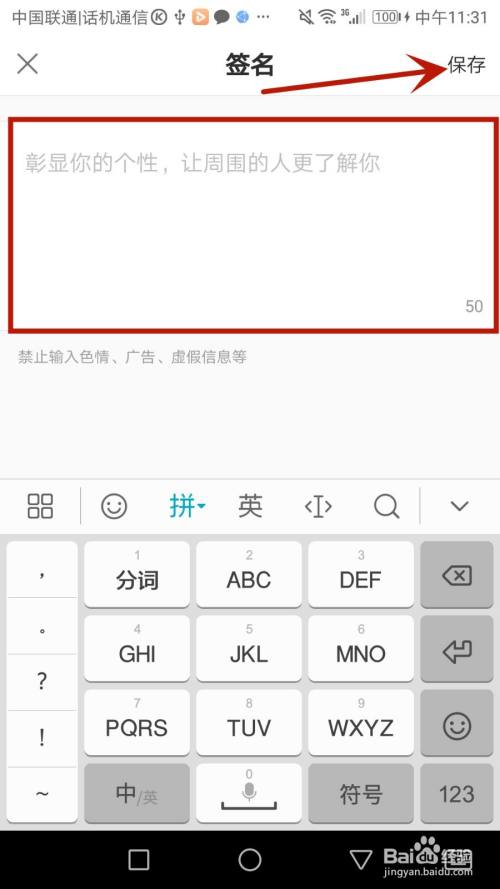 输入署名内容后,点击右上角生存即可