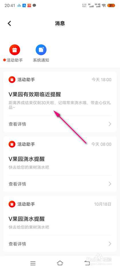 在软件主页,找到v果园,点击右侧去浇水图标。