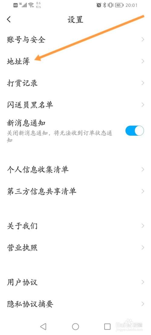 找到地址簿。