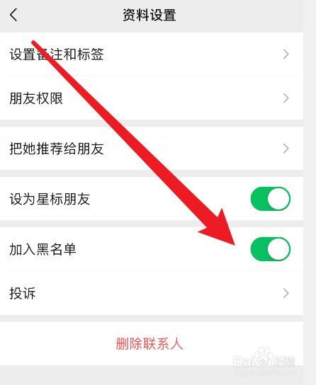 最后,如下,将【插手黑名单】后面的按钮点击一下封闭即可