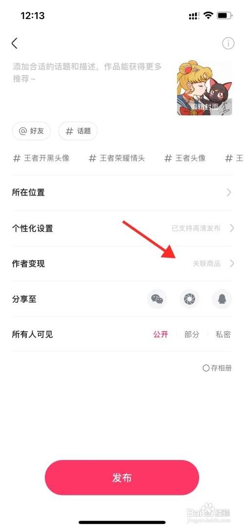 在公布的内容里,确定好联系关系的商品再编纂内容后点击公布。