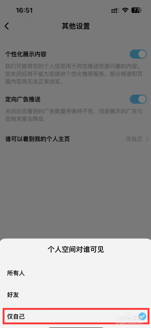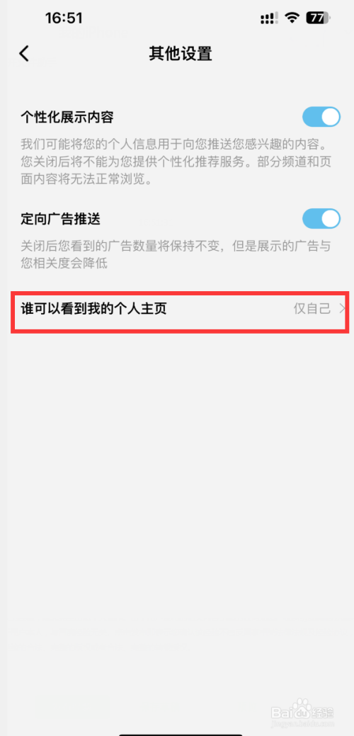 点击“谁可以看到我的个人主页”。