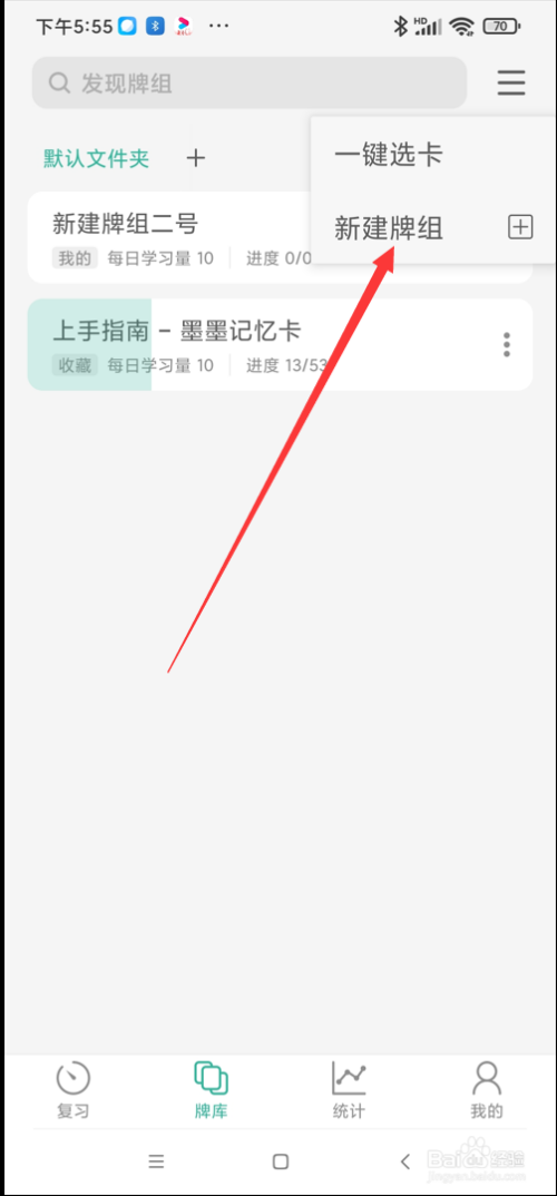 点击弹出菜单中的”新建牌组“