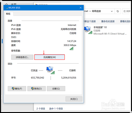 通例状况页面点击“无线属性”,最上面切换到“安全”页,勾选下方的“显示字符”即可显示收集安全密钥,这就是自家无线的密码。