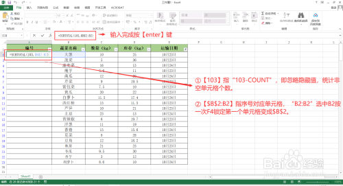 ①【103】指“103-COUNT”,即纰漏隐蔽值,统计非空单位格个数。